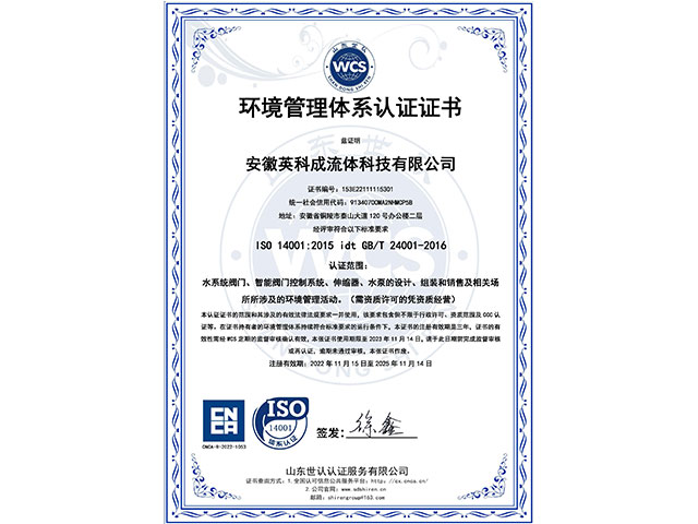 安徽英科成流體科技有限公司位于黃山腳下長江之濱的中國古銅都-安徽省銅陵市。公司注冊資金1.1億,是國內(nèi)一家專業(yè)致力于給排水行業(yè)系統(tǒng)解決方案、閥門以及智能閥門技術(shù)研發(fā)與生產(chǎn)銷售服務(wù)為一體的企業(yè)。   我們擁有完善的質(zhì)量控制體系和檢測設(shè)備,公司主要的產(chǎn)品有閘閥、蝶閥、偏心半球閥、液控蝶式止回閥、靜音止回閥、橡膠瓣止回閥、活塞式流量調(diào)節(jié)、錐型閥、節(jié)能型泵控閥、倒流防止器、減壓閥、排氣閥、排泥閥、伸縮器、閘門、啟閉機(jī)等二十多個系列,可以充分滿足客戶的一站式需求。……